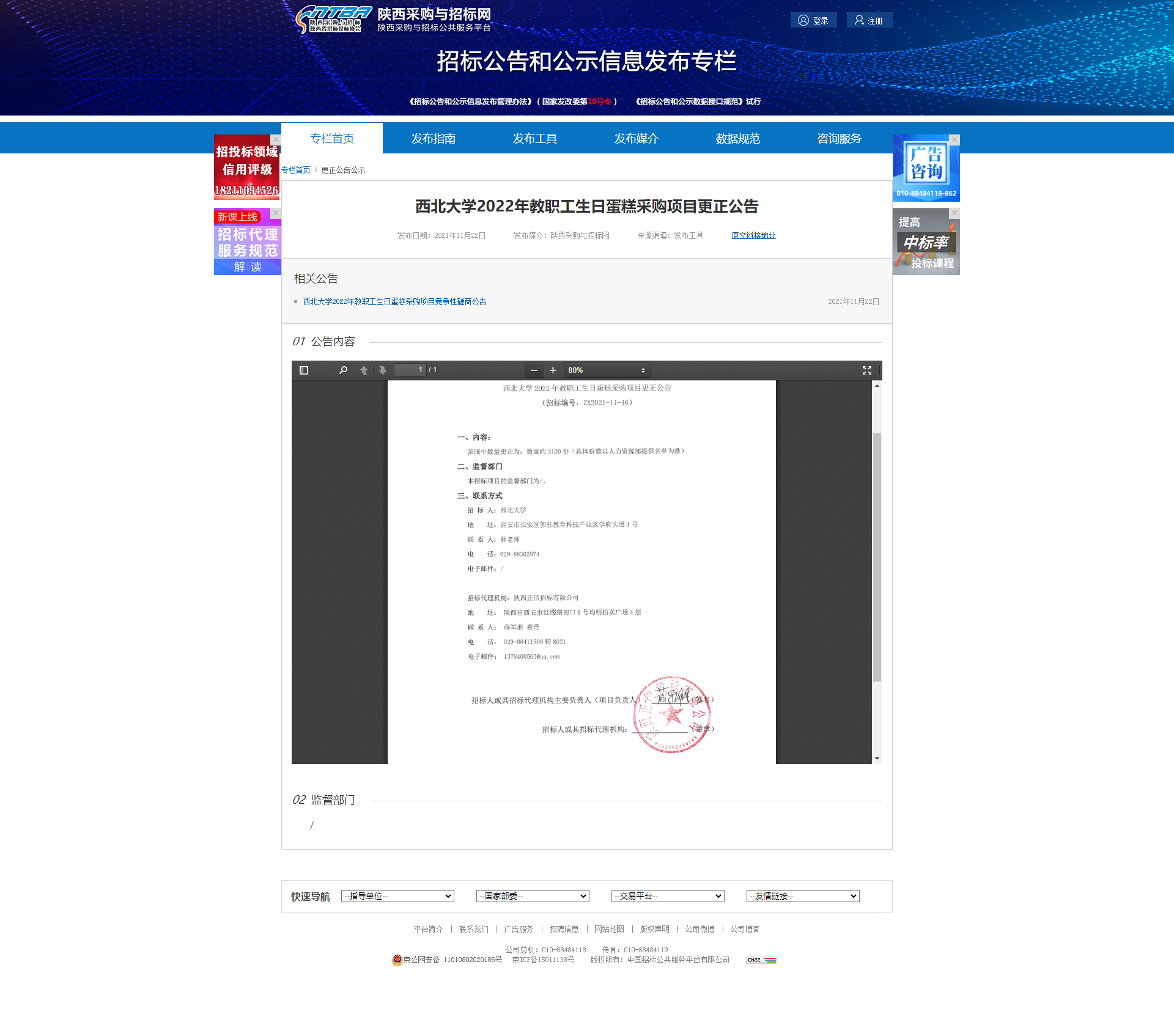 伟德国际1949始于英国2022年教职工生日蛋糕采购项目更正公告 作者: 编辑:薛利娟 时间:2021-11-24 原公告网址:http://bulletin.sntba.com/changeBulletin/2021-11-22/366977.html