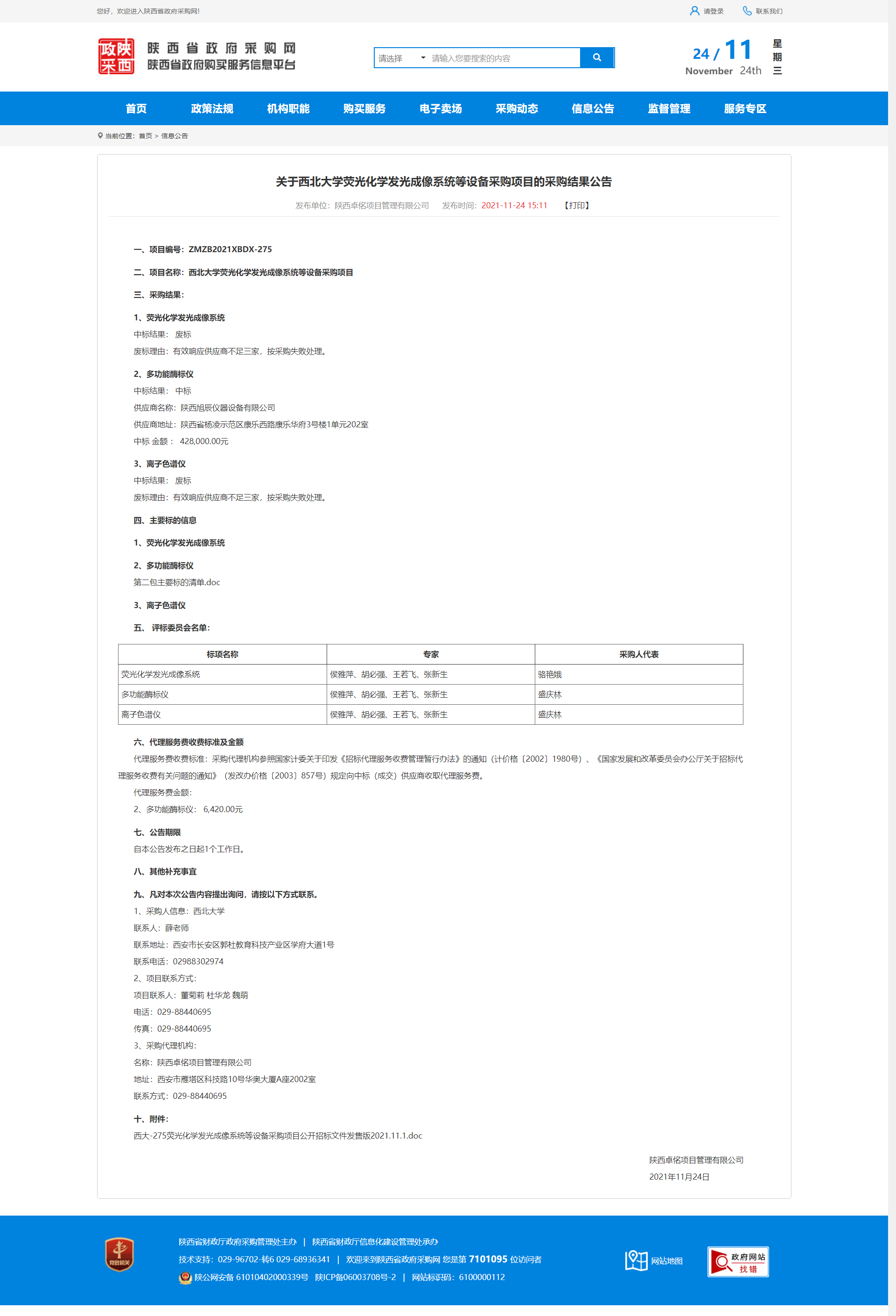 关于伟德国际1949始于英国荧光化学发光成像系统等设备采购项目的采购结果公告 作者: 编辑:薛利娟 时间:2021-11-24 原公告网址:http://www.ccgp-shaanxi.gov.cn/notice/noticeDetail.do?noticeguid=8a85be347d2d6f8d017d50c64ee42710