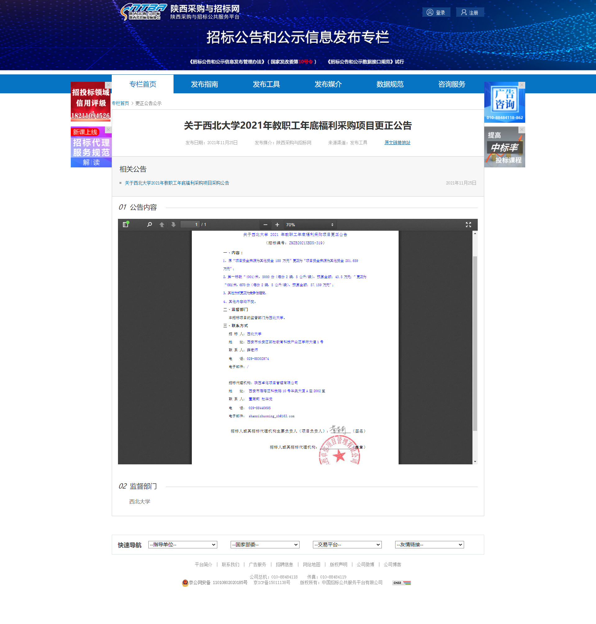 关于伟德国际1949始于英国2021年教职工年底福利采购项目更正公告 作者: 编辑:薛利娟 时间:2021-11-25 原公告网址:http://bulletin.sntba.com/changeBulletin/2021-11-25/368458.html