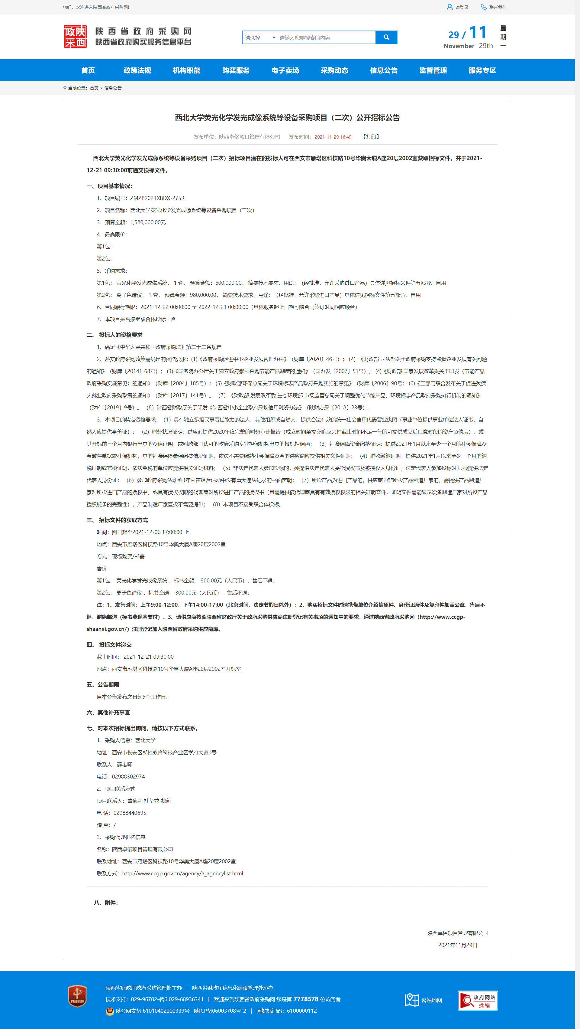 伟德国际1949始于英国荧光化学发光成像系统等设备采购项目(二次)公开招标公告 作者: 编辑:薛利娟 时间:2021-11-29 原公告网址:http://www.ccgp-shaanxi.gov.cn/notice/noticeDetail.do?noticeguid=8a85be327d6a73bf017d6ab12dfa081d