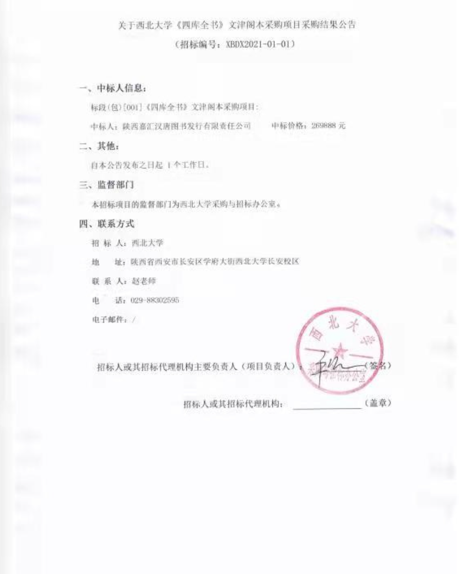 关于伟德国际1949始于英国《四库全书》文津阁本采购项目成交结果公告