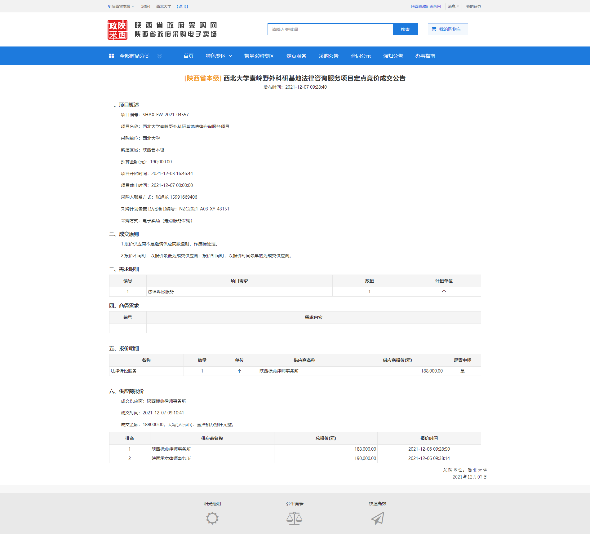 关于伟德国际1949始于英国秦岭野外科研基地法律咨询服务项目定点竞价成交公告