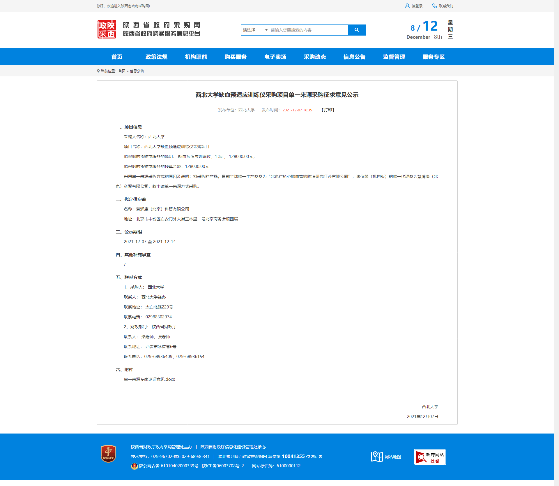 伟德国际1949始于英国缺血预适应训练仪采购项目单一来源采购征求意见公示 作者: 编辑:薛利娟 时间:2021-12-08 原公告链接:http://www.ccgp-shaanxi.gov.cn/notice/noticeDetail.do?noticeguid=8a85be347d6a75c8017d9407fc0b61e6