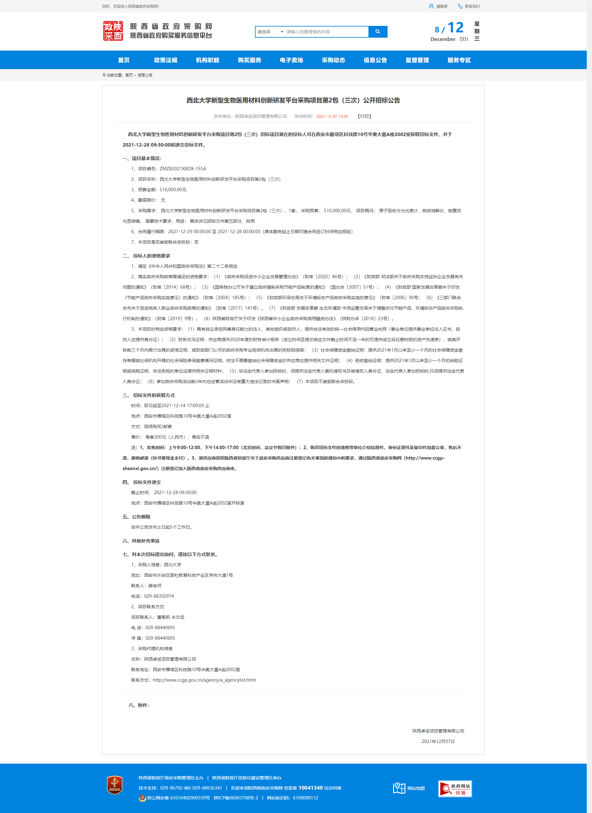 伟德国际1949始于英国新型生物医用材料创新研发平台采购项目第2包(三次)公开招标公告 作者: 编辑:薛利娟 时间:2021-12-08 原公告链接:http://www.ccgp-shaanxi.gov.cn/notice/noticeDetail.do?noticeguid=8a85be347d6a75c8017d92f597c94e2d
