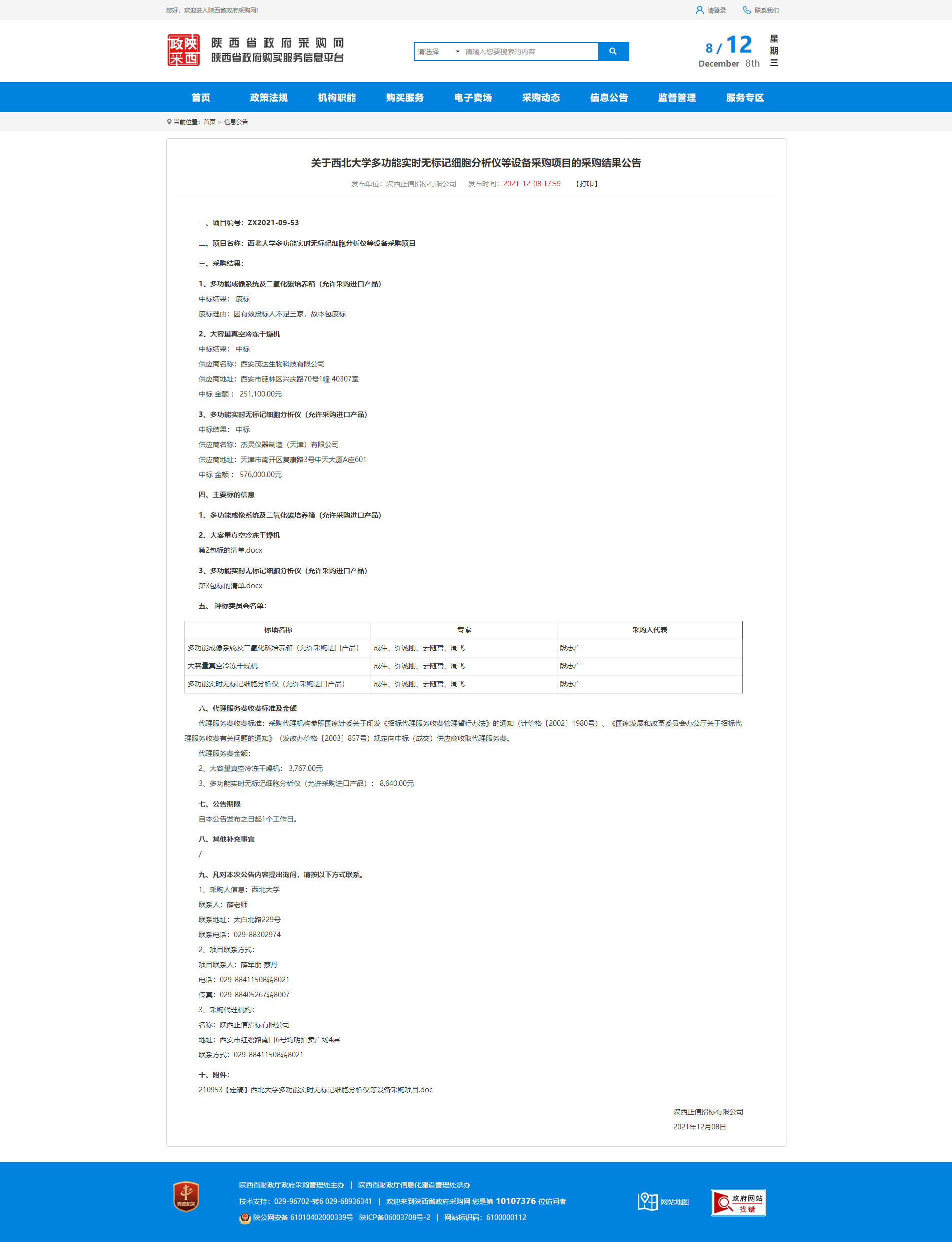 关于伟德国际1949始于英国多功能实时无标记细胞分析仪等设备采购项目的采购结果公告