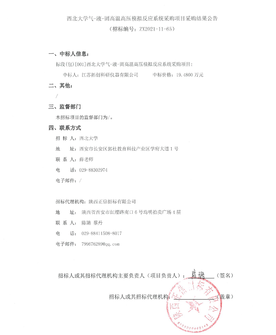 伟德国际1949始于英国气-液-固高温高压模拟反应系统采购项目采购结果公告