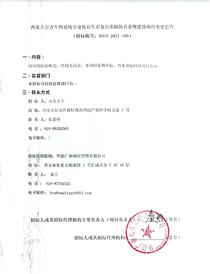 伟德国际1949始于英国古生物系统学及化石生态复原虚拟仿真系统建设项目变更公告