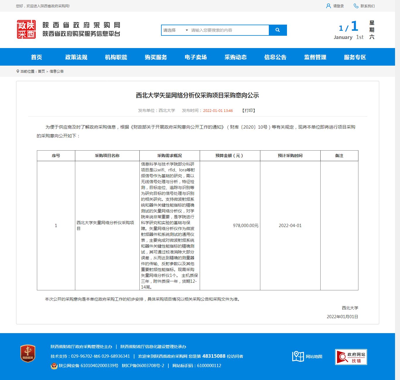 伟德国际1949始于英国矢量网络分析仪采购项目采购意向公示 作者: 编辑:薛利娟 时间:2022-01-01 原公告链接:http://www.ccgp-shaanxi.gov.cn/notice/noticeDetail.do?noticeguid=8a85be327deba994017e1429df4c7a40