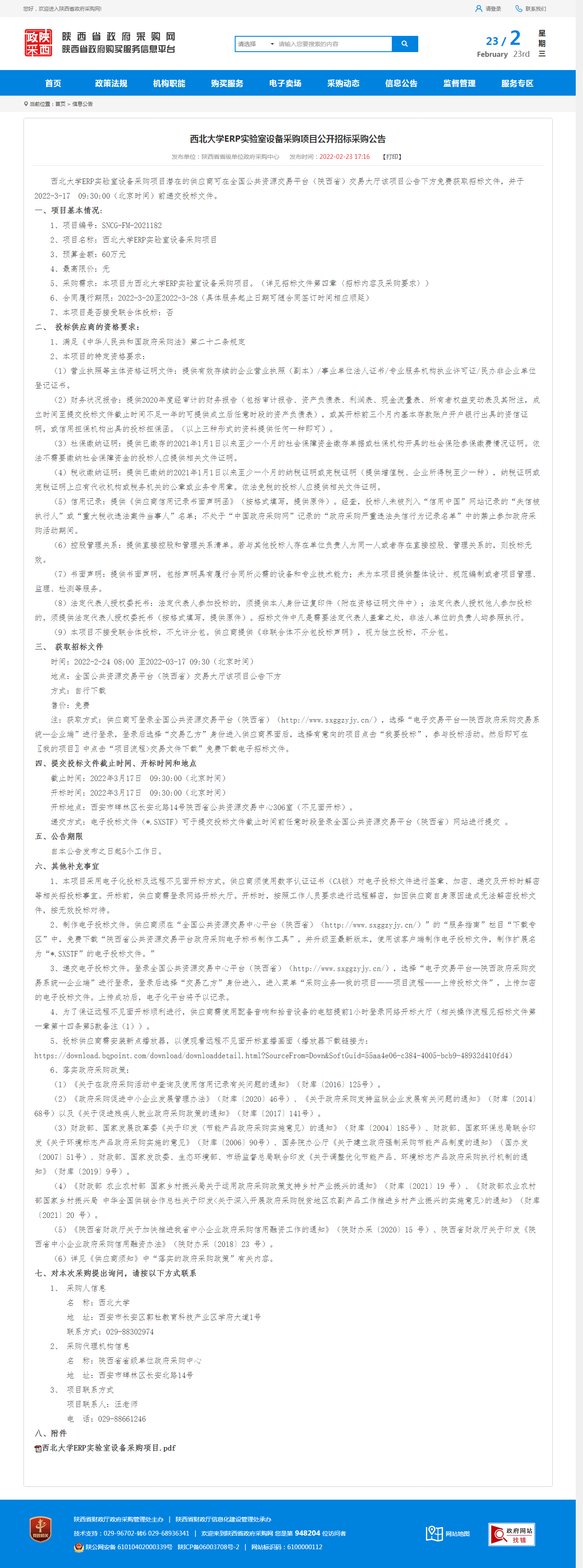 伟德国际1949始于英国ERP实验室设备采购项目公开招标采购公告 作者: 编辑:薛利娟 时间:2022-02-23 原公告链接:http://www.ccgp-shaanxi.gov.cn/notice/noticeDetail.do?noticeguid=8a85be387e22c8ad017f25db42450373