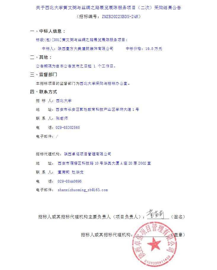 关于伟德国际1949始于英国黄文弼与丝绸之路展览展陈服务项目(二次)采购结果公告