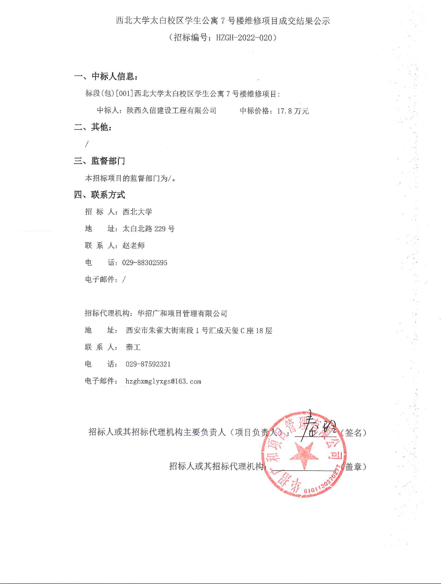 伟德国际1949始于英国太白校区学生公寓7号楼维修项目成交结果公示