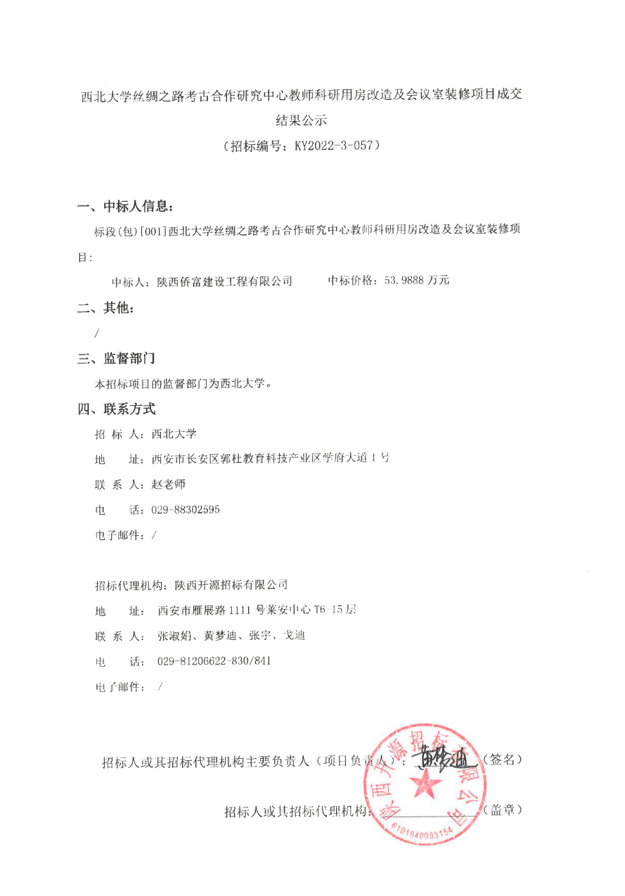 伟德国际1949始于英国丝绸之路考古合作研究中心教师科研用房改造及会议室装修项目成交结果公示