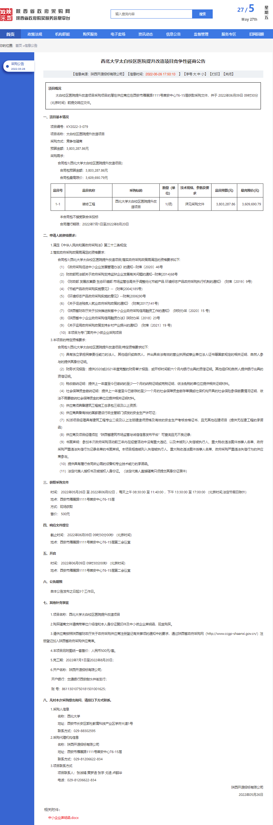 伟德国际1949始于英国太白校区医院提升改造项目竞争性磋商公告