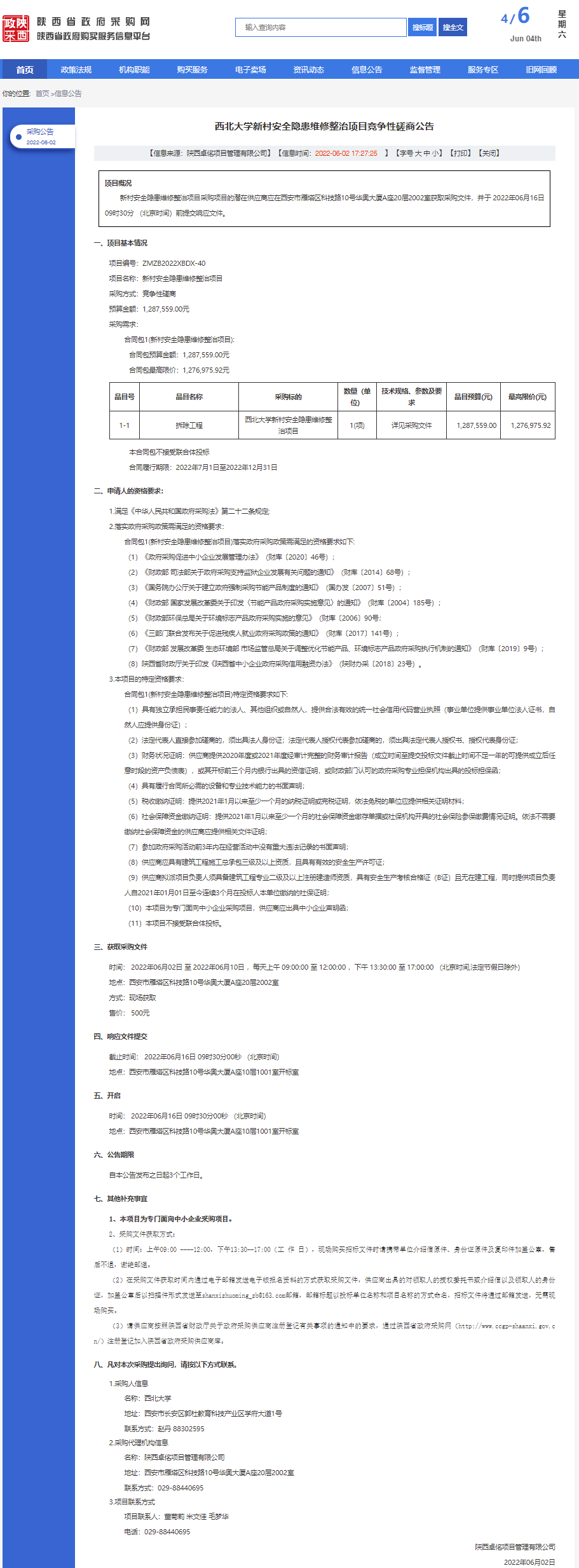 伟德国际1949始于英国新村安全隐患维修整治项目竞争性磋商公告