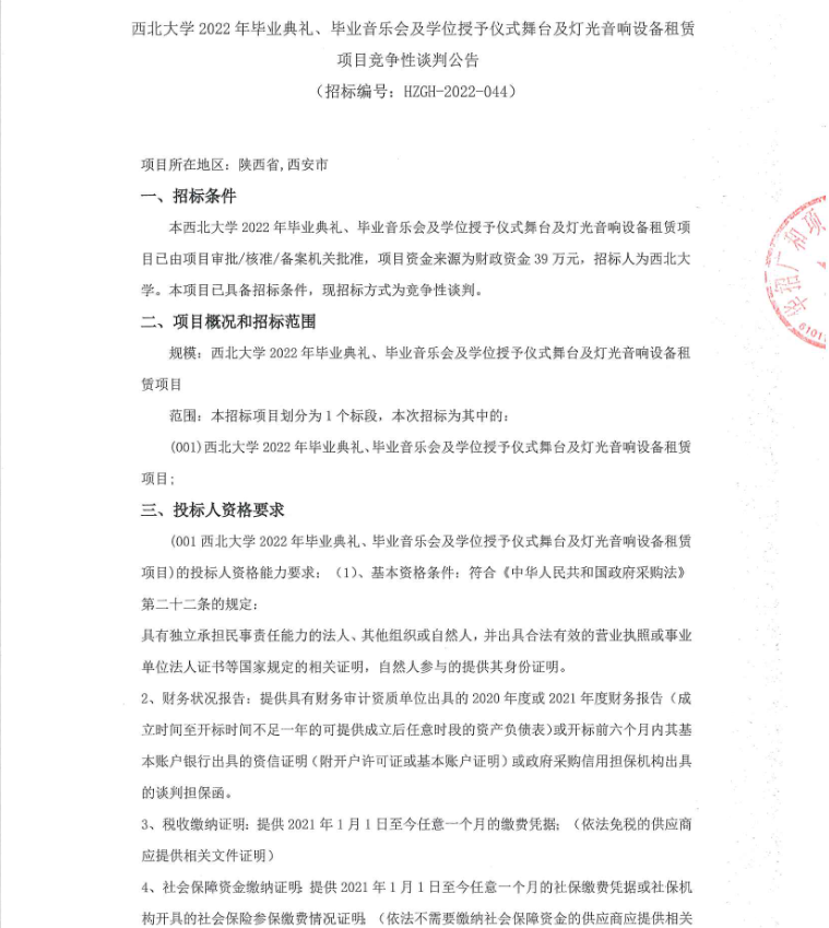 伟德国际1949始于英国2022年毕业典礼、毕业音乐会及学位授予仪式舞台及灯光音响设备租赁项目竞争性谈判公告