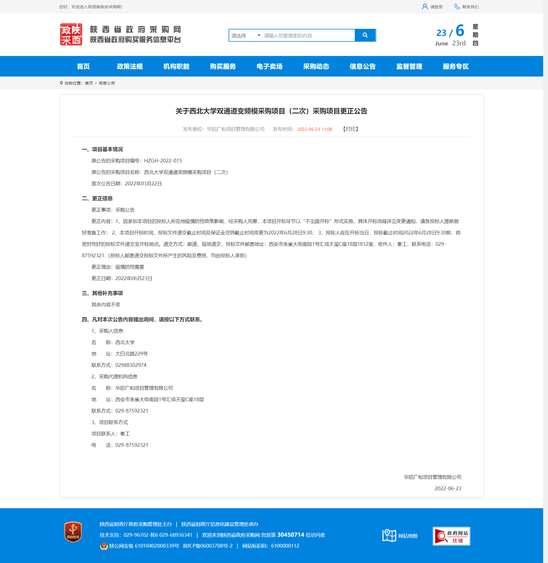 关于伟德国际1949始于英国双通道变频模采购项目(二次)采购项目更正公告 作者: 编辑:薛利娟 时间:2022-06-23 原公告链接:http://113.200.80.230/notice/noticeDetail.do?noticeguid=8a85be3380b2b28401818e7fbfde4dfc