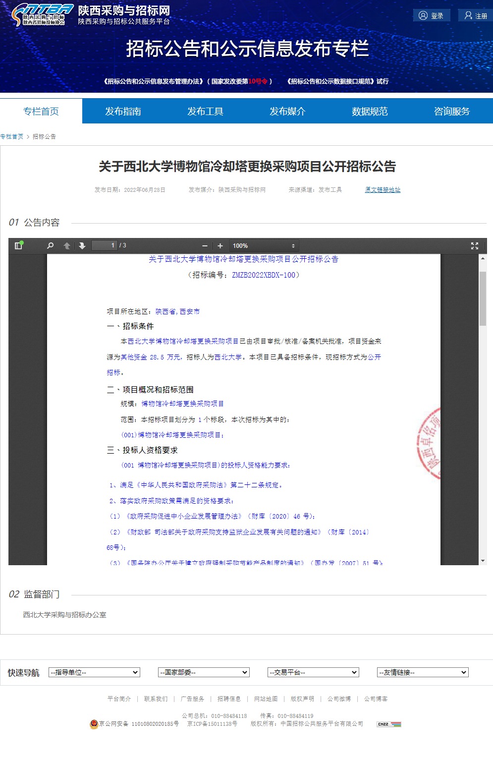 关于伟德国际1949始于英国博物馆冷却塔更换采购项目公开招标公告 作者: 编辑:采购与招标办公室 时间:2022-06-28 原公告链接:http://bulletin.sntba.com/biddingBulletin/2022-06-28/439809.html