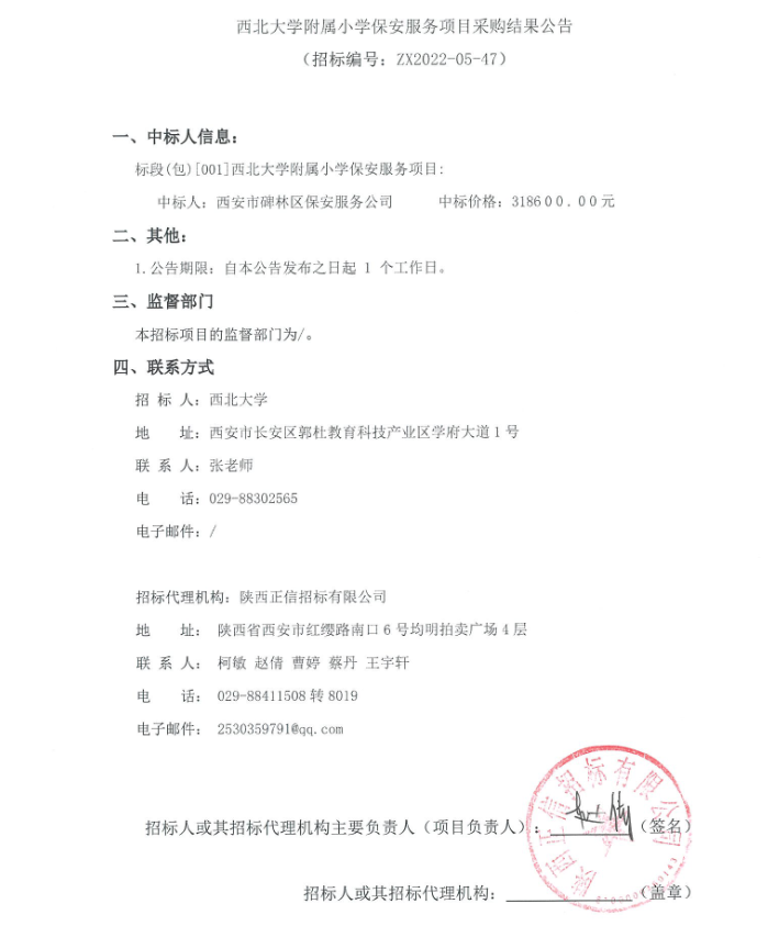 关于伟德国际1949始于英国附属小学保安服务项目采购结果公告