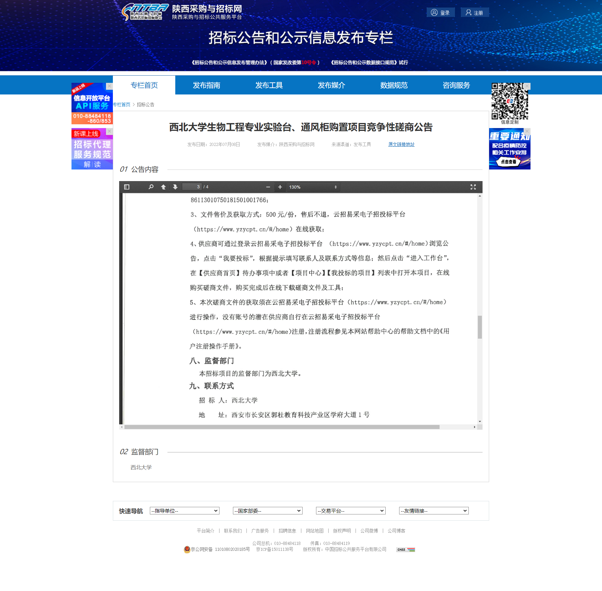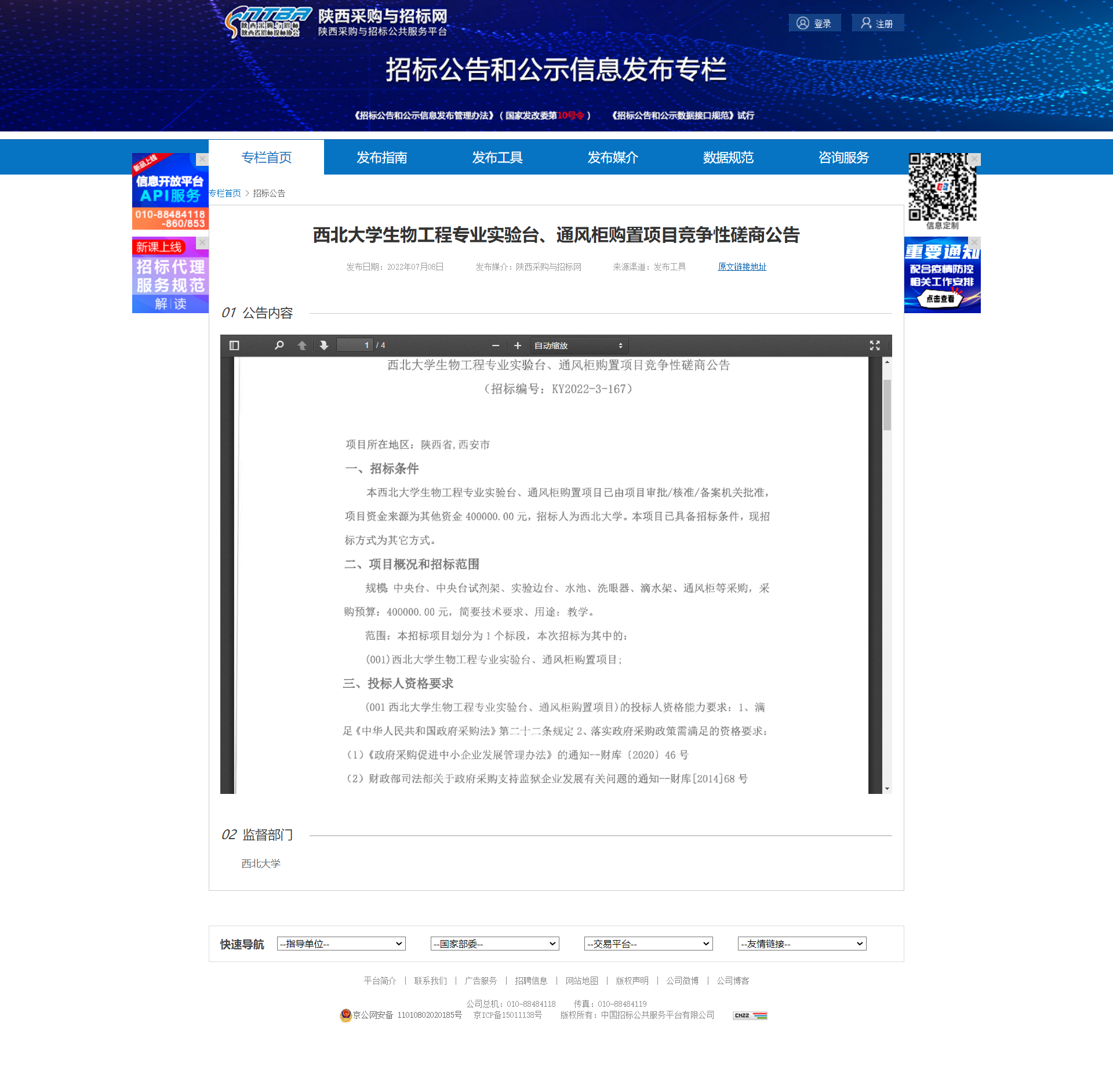 伟德国际1949始于英国生物工程专业实验台、通风柜购置项目竞争性磋商公告 作者: 编辑:薛利娟 时间:2022-07-08 原公告链接:http://bulletin.sntba.com/biddingBulletin/2022-07-08/445112.html