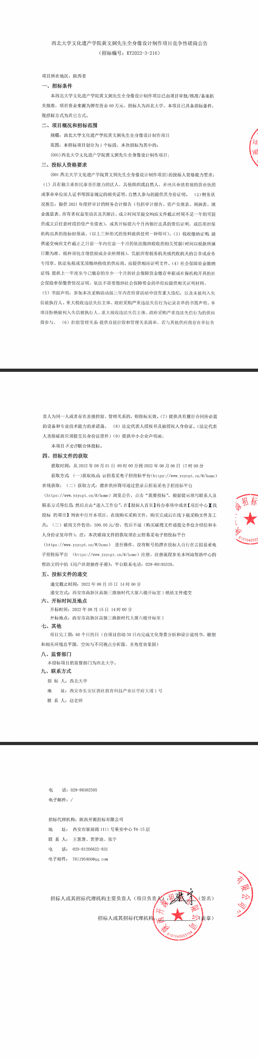 伟德国际1949始于英国文化遗产学院黄文弼先生全身像设计制作项目竞争性磋商公告
