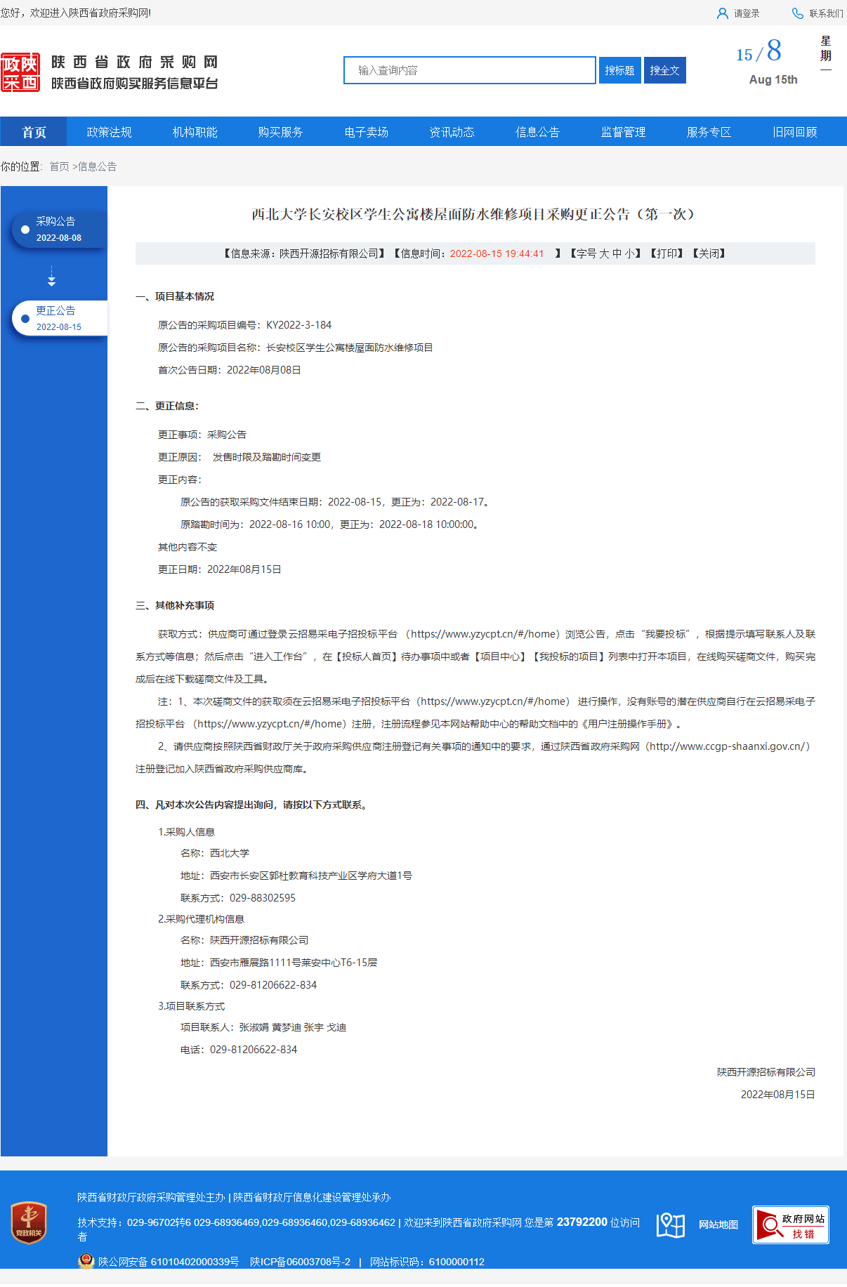 伟德国际1949始于英国长安校区学生公寓楼屋面防水维修项目采购更正公告(第一次)