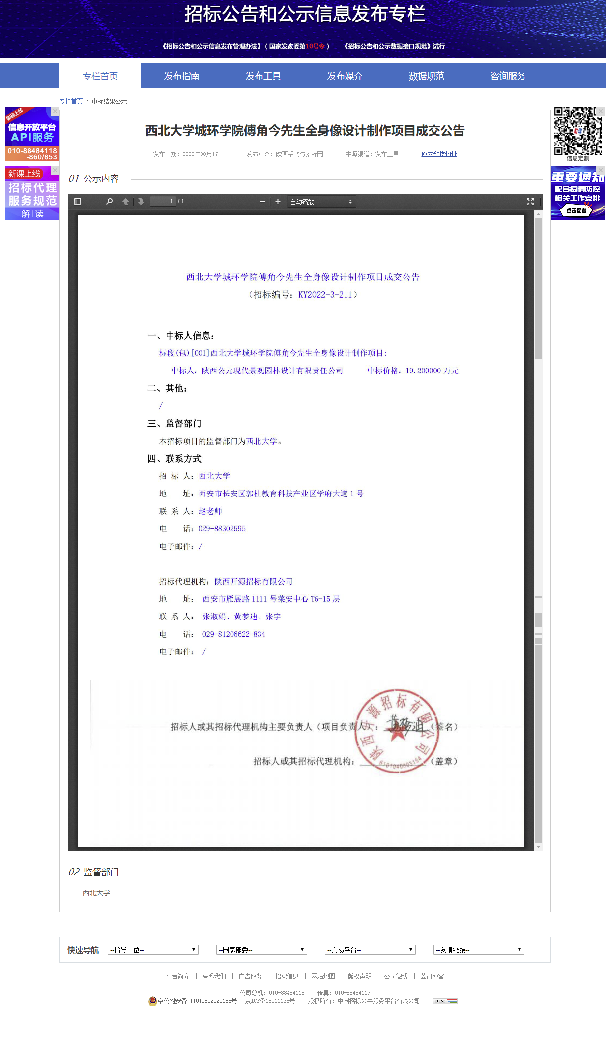 伟德国际1949始于英国城环学院傅角今先生全身像设计制作项目成交公告