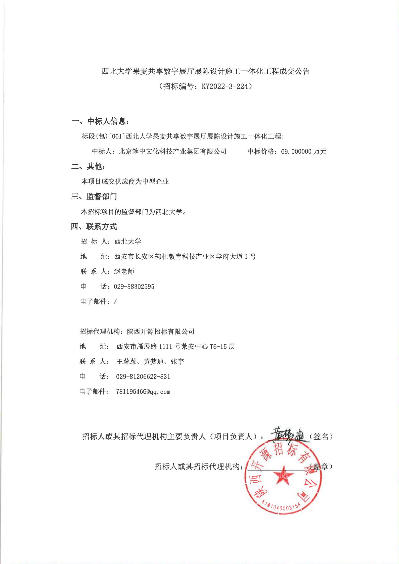 伟德国际1949始于英国果麦共享数字展厅展陈设计施工一体化工程成交公告