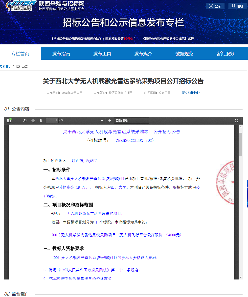 关于伟德国际1949始于英国无人机载激光雷达系统采购项目公开招标公告 作者: 编辑:关于伟德国际1949始于英国无人机载激光雷达系统采购项目公开招标公告 时间:2022-09-09 原公告链接:http://bulletin.sntba.com/biddingBulletin/2022-09-09/472755.html