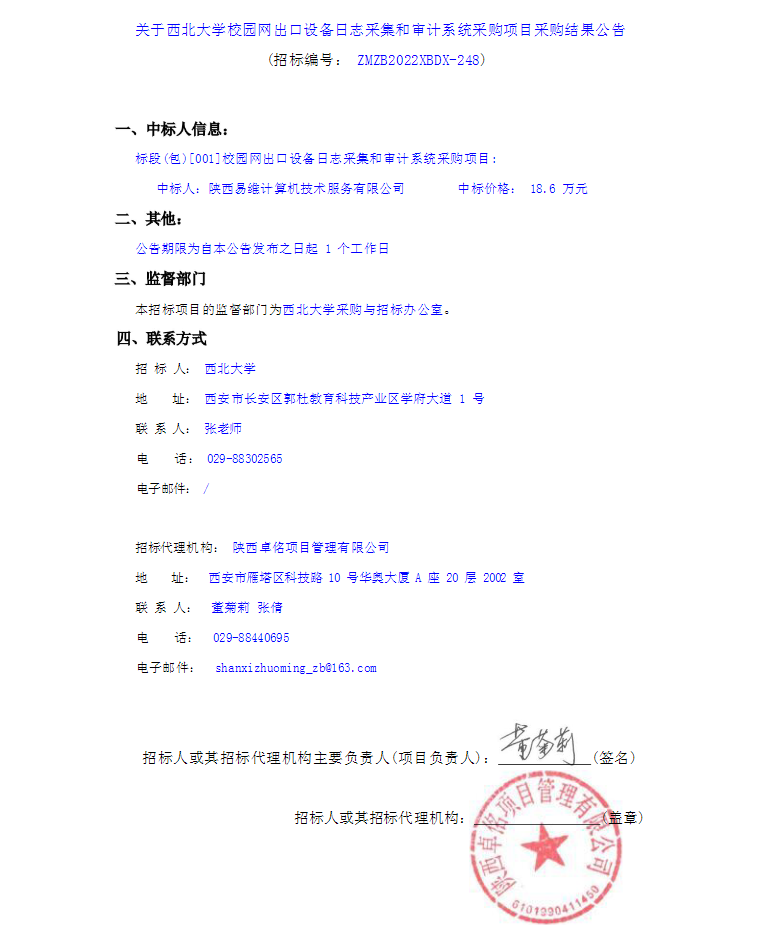 关于伟德国际1949始于英国校园网出口设备日志采集和审计系统采购项目采购结果公告