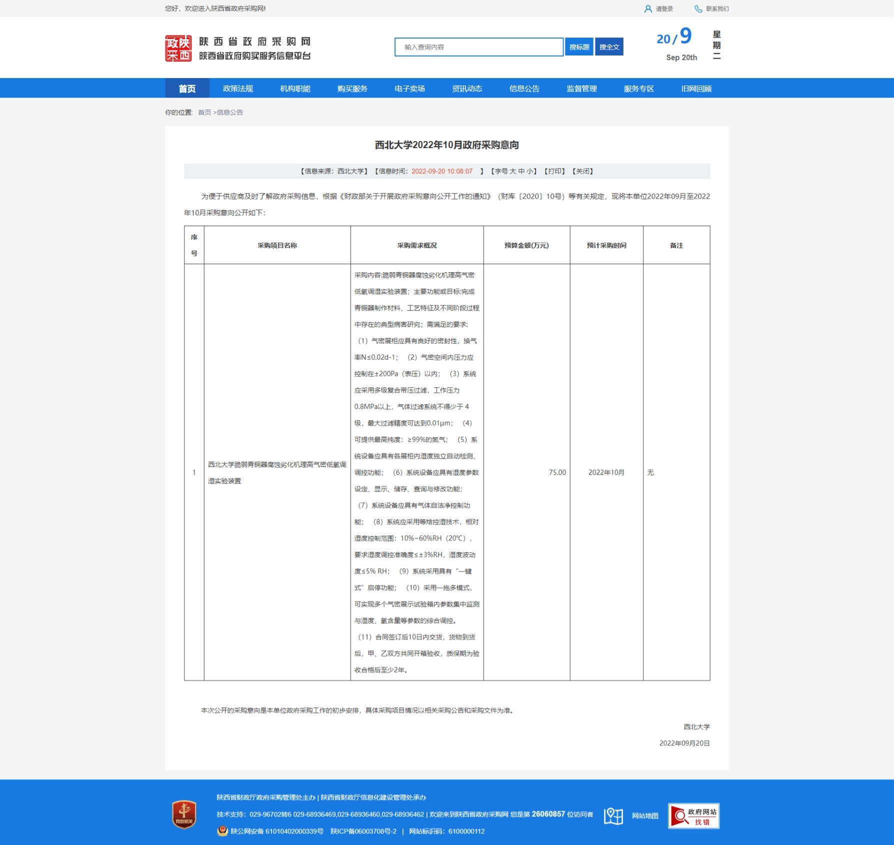 伟德国际1949始于英国2022年10月政府采购意向 作者: 编辑:采购与招标办公室 时间:2022-09-20 原公告链接:http://www.ccgp-shaanxi.gov.cn/freecms/site/shaanxi/ggxx/info/2022/8a69c84783550299018358999f5835c8.html?noticeType=59¬iceId=956398b8-3889-11ed-9a8e-08c0eb20c666