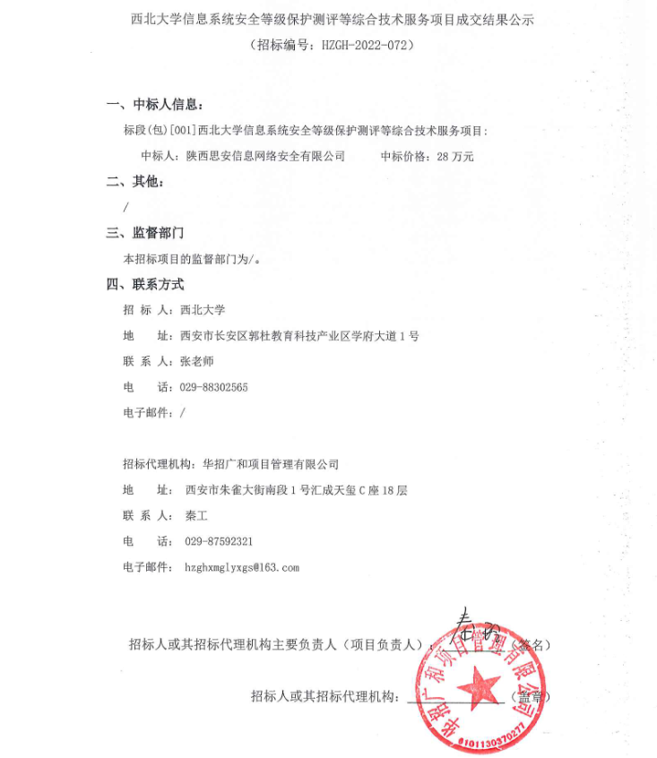 伟德国际1949始于英国信息系统安全等级保护测评等综合技术服务项目成交结果公示