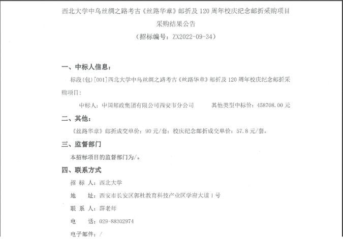 伟德国际1949始于英国中乌丝绸之路考古《丝路华章》邮折及120周年校庆纪念邮折采购项目采购结果公告 作者: 编辑:采购与招标办公室 时间:2022-10-09 原公告链接:http://bulletin.sntba.com/resultBulletin/2022-10-08/482720.html