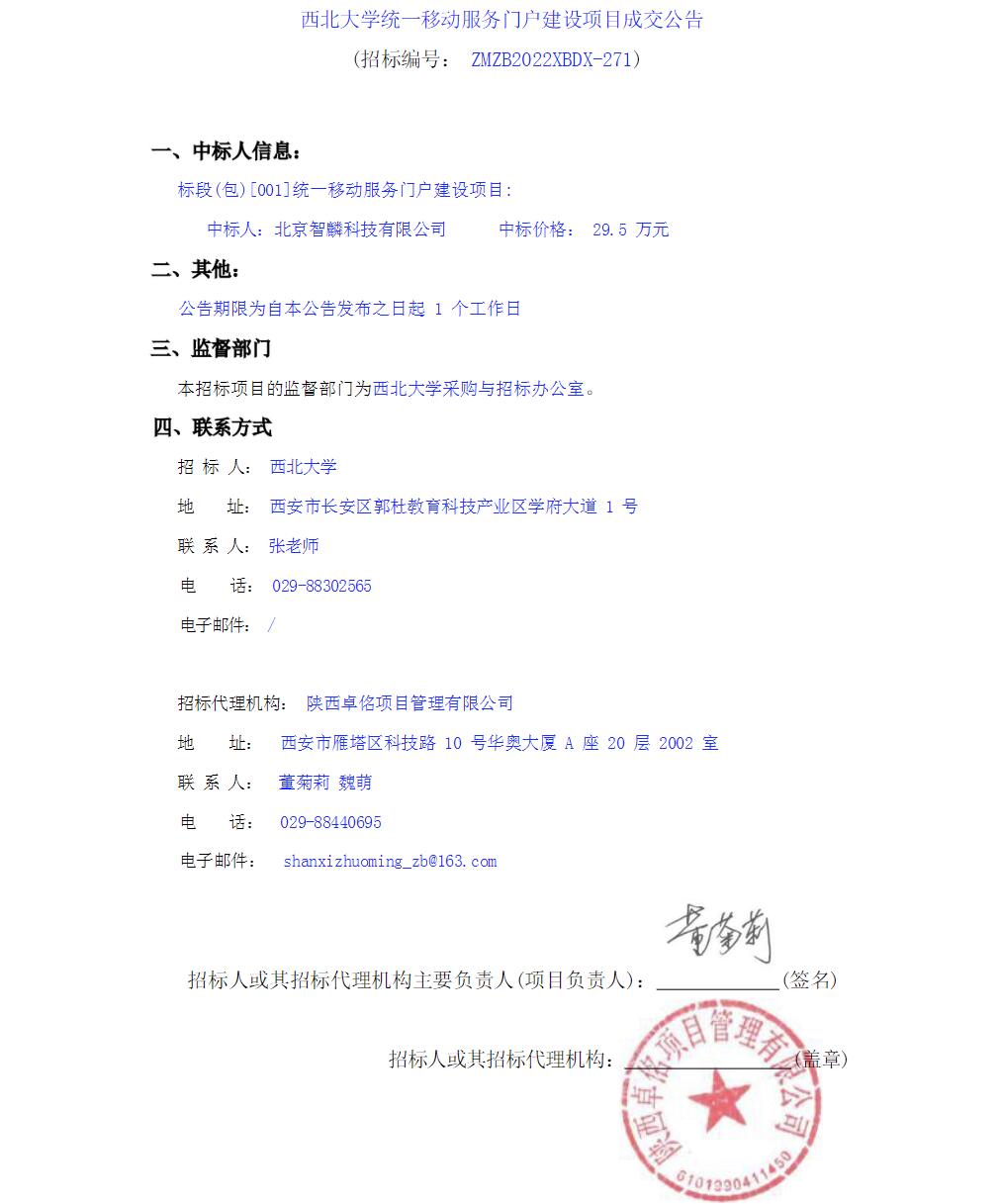 伟德国际1949始于英国统一移动服务门户建设项目成交公告