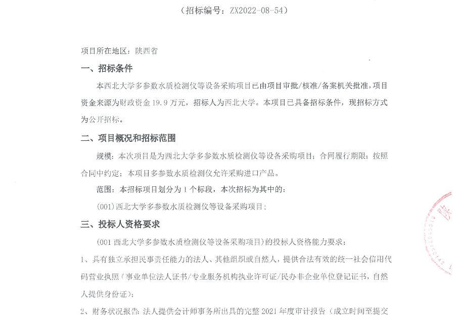 伟德国际1949始于英国多参数水质检测仪等设备采购项目公开招标公告 作者: 编辑:采购与招标办公室 时间:2022-11-03 原公告链接:http://bulletin.sntba.com/biddingBulletin/2022-11-03/494214.html