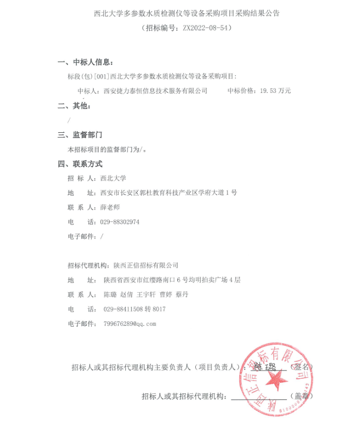 伟德国际1949始于英国多参数水质检测仪等设备采购项目采购结果公告