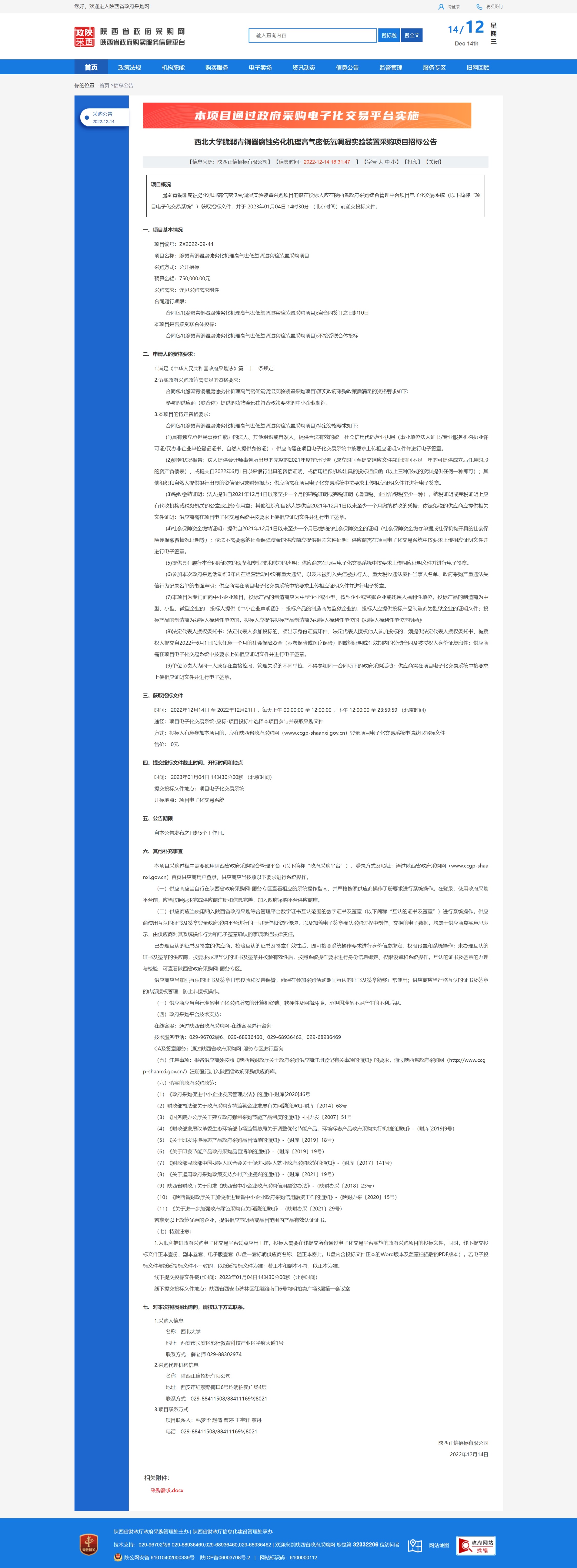 伟德国际1949始于英国脆弱青铜器腐蚀劣化机理高气密低氧调湿实验装置采购项目招标公告 作者: 编辑:采购与招标办公室 时间:2022-12-14 原公告链接:http://www.ccgp-shaanxi.gov.cn/freecms/site/shaanxi/ggxx/info/2022/8a69c04c84ea4f7e0185100661482b70.html?noticeType=001011¬iceId=37595ef0-7b9b-11ed-9a8e-08c0eb20c666