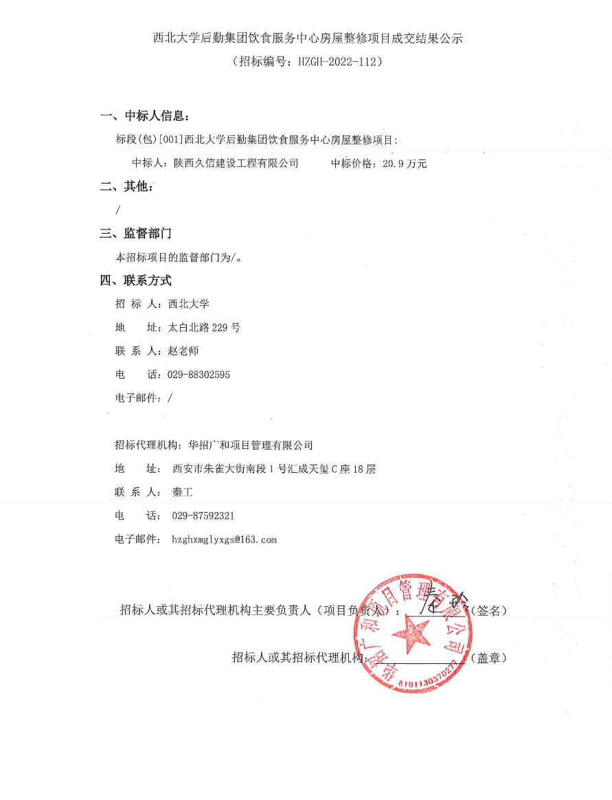 伟德国际1949始于英国后勤集团饮食服务中心房屋整修项目成交结果公示
