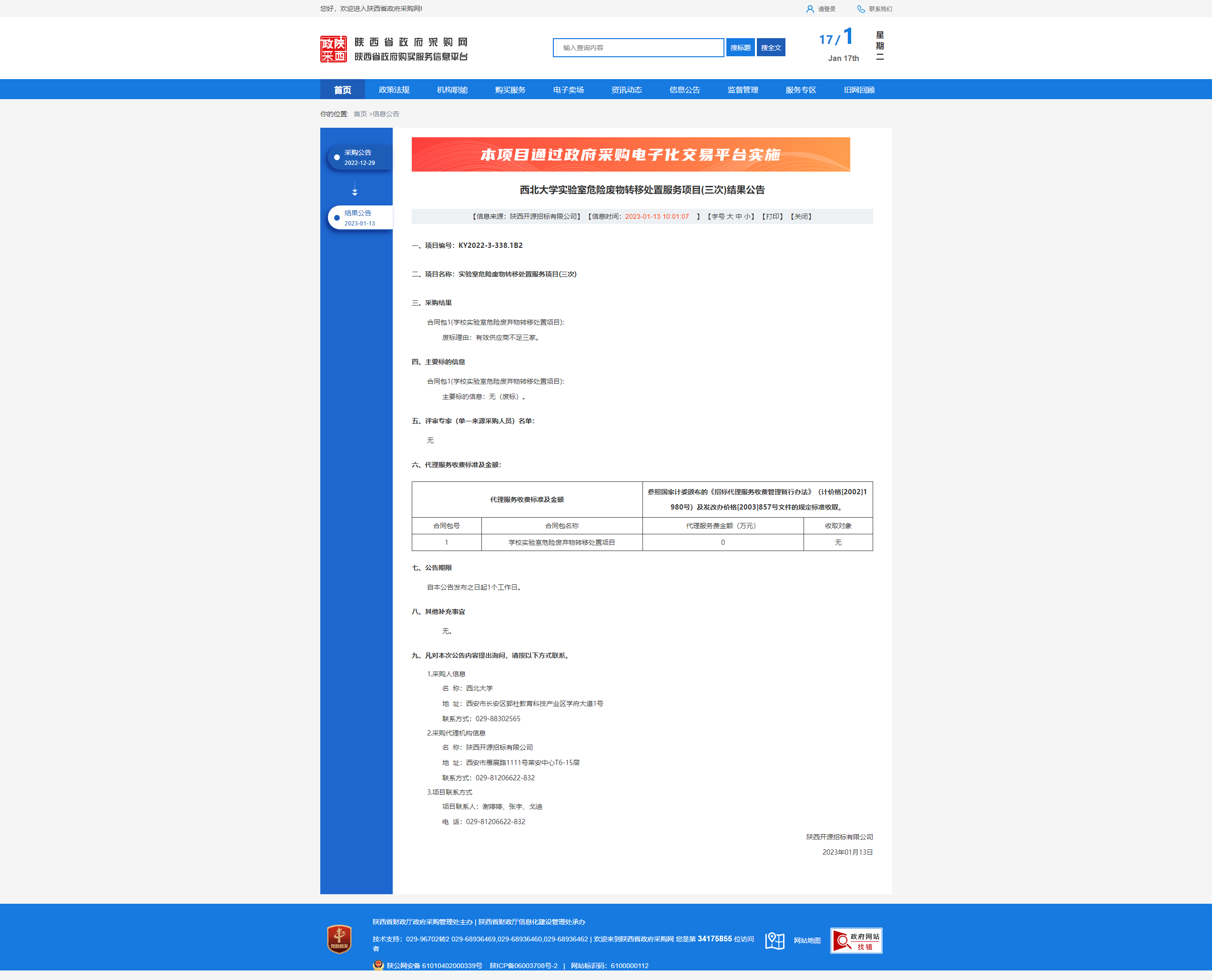 伟德国际1949始于英国实验室危险废物转移处置服务项目(三次)结果公告