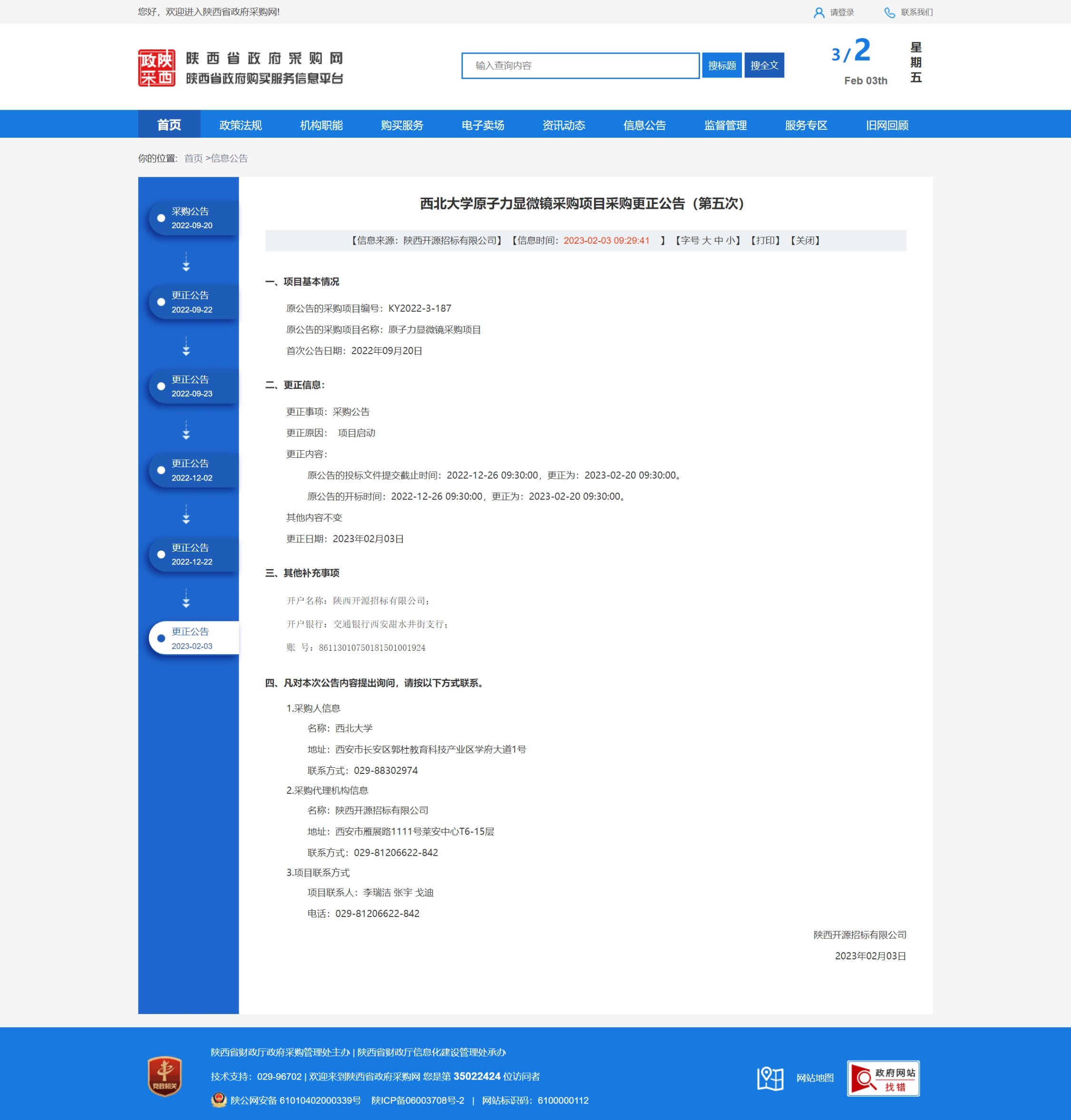 伟德国际1949始于英国原子力显微镜采购项目采购更正公告 作者: 编辑:采购与招标办公室 时间:2023-02-03 原公告链接:http://www.ccgp-shaanxi.gov.cn/freecms/site/shaanxi/ggxx/info/2023/8a69c875858179a7018614dfbb5c2585.html?noticeType=001031¬iceId=09c0ceef-a363-11ed-9a8e-08c0eb20c666