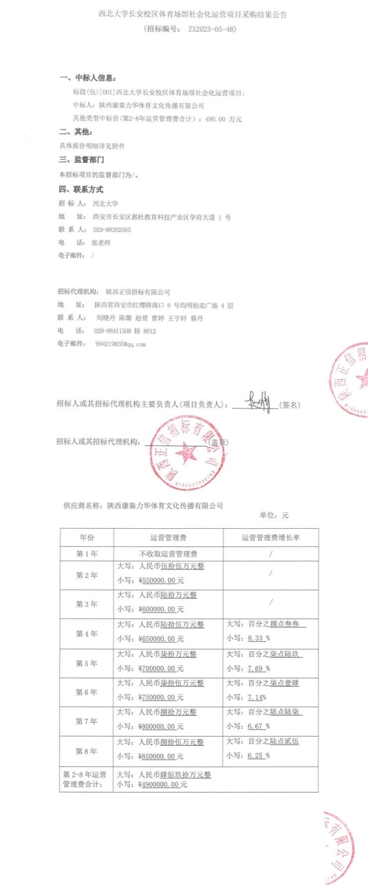 伟德国际1949始于英国长安校区体育场馆社会化运营项目采购结果公告