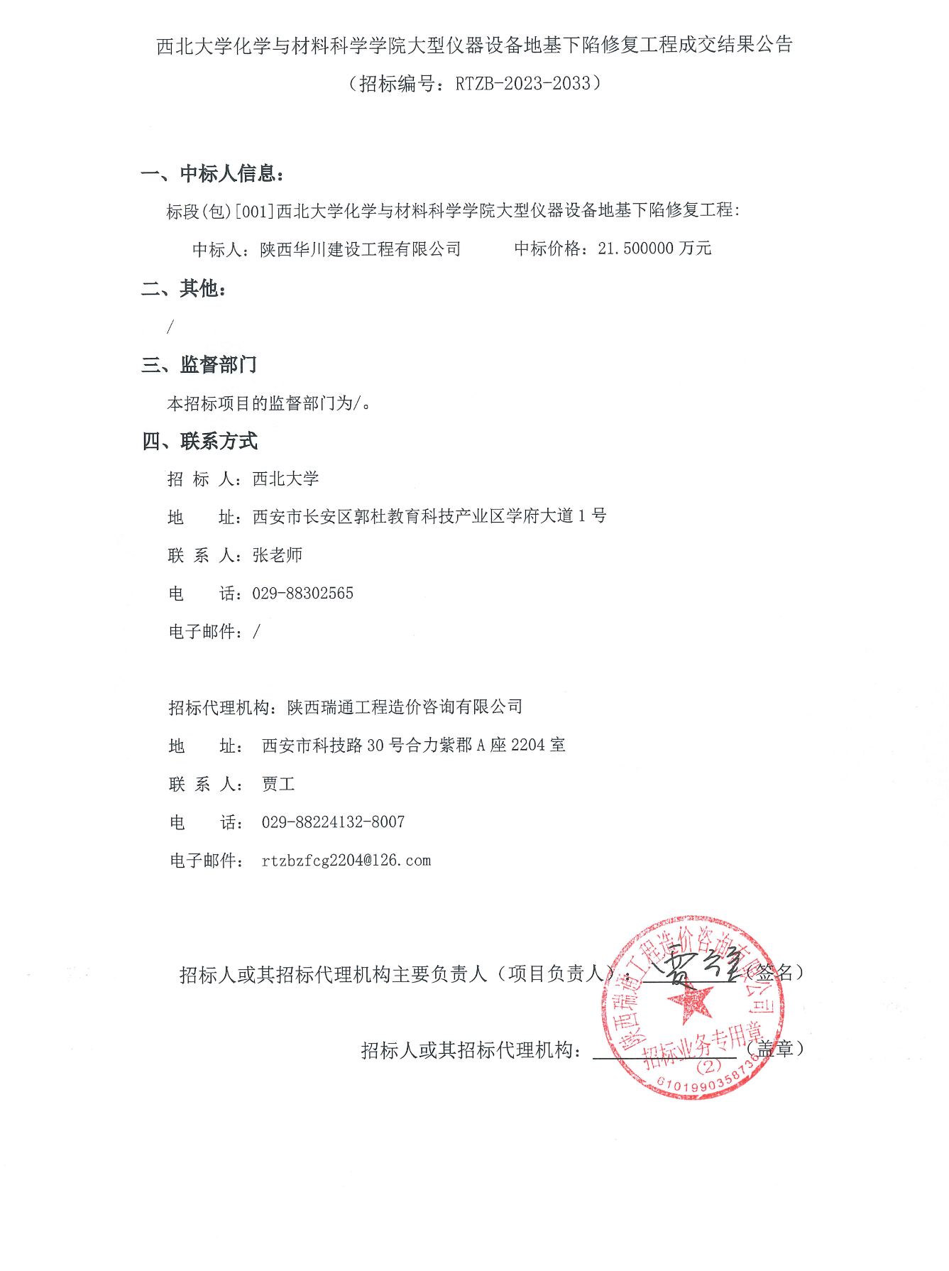 伟德国际1949始于英国化学与材料科学学院大型仪器设备地基下陷修复工程成交结果公告