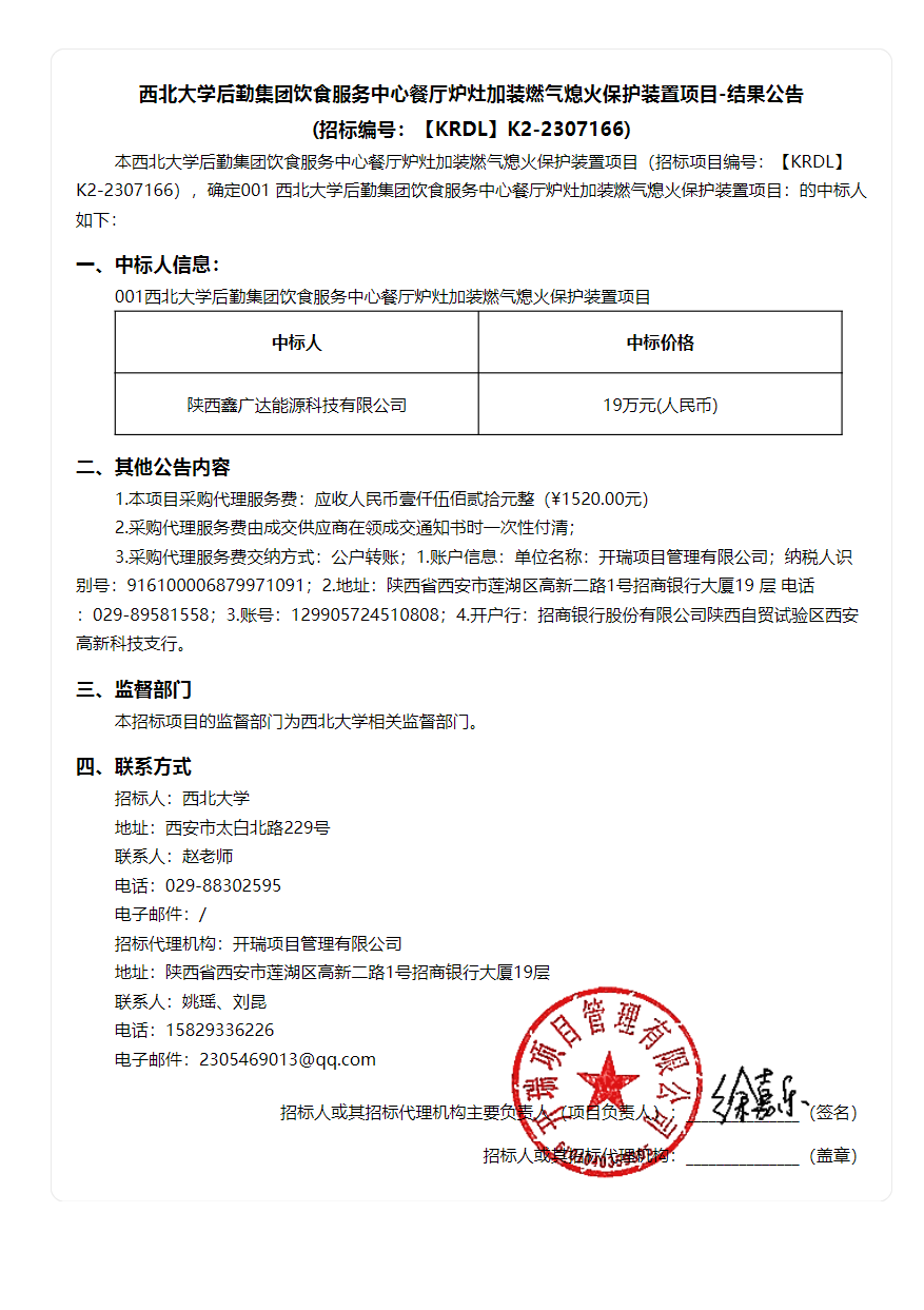 伟德国际1949始于英国后勤集团饮食服务中心餐厅炉灶加装燃气熄火保护装置项目-结果公告
