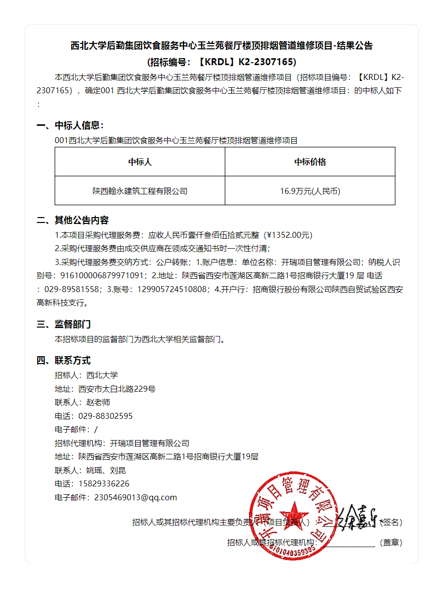 伟德国际1949始于英国后勤集团饮食服务中心玉兰苑餐厅楼顶排烟管道维修项目-结果公告
