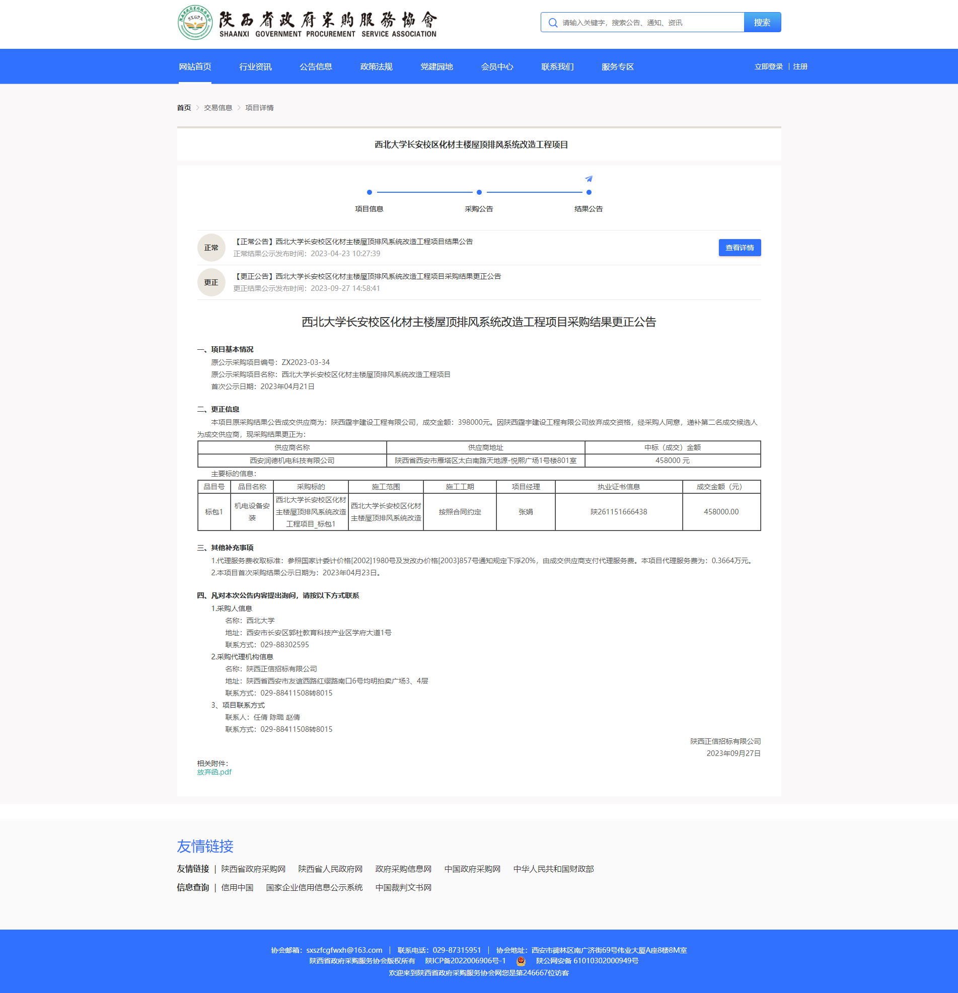伟德国际1949始于英国长安校区化材主楼屋顶排风系统改造工程项目采购结果更正公告