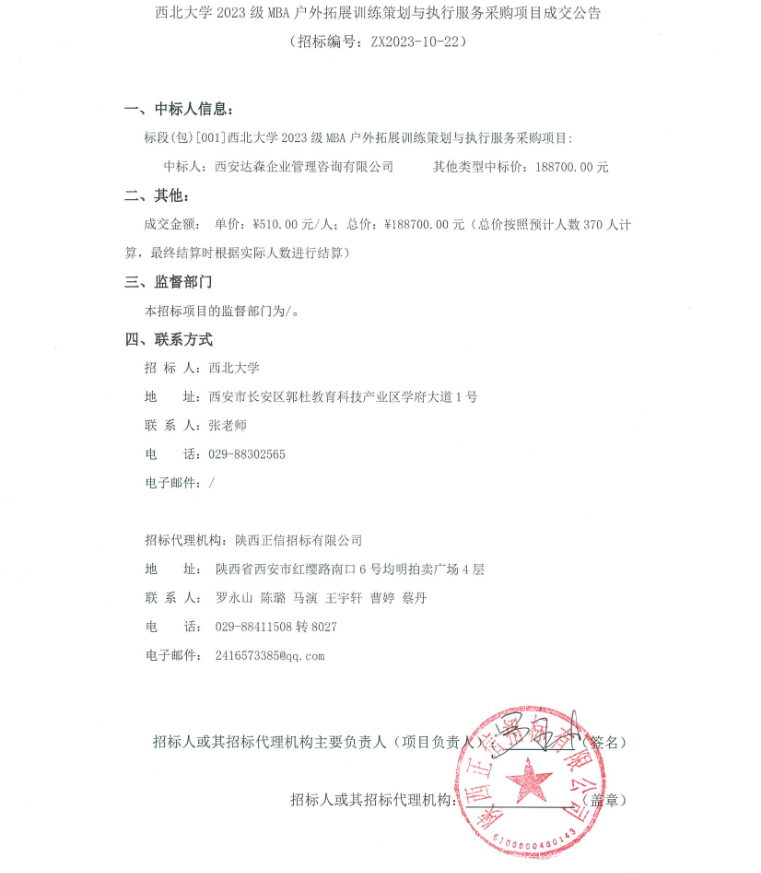 伟德国际1949始于英国2023级MBA户外拓展训练策划与执行服务采购项目成交公告