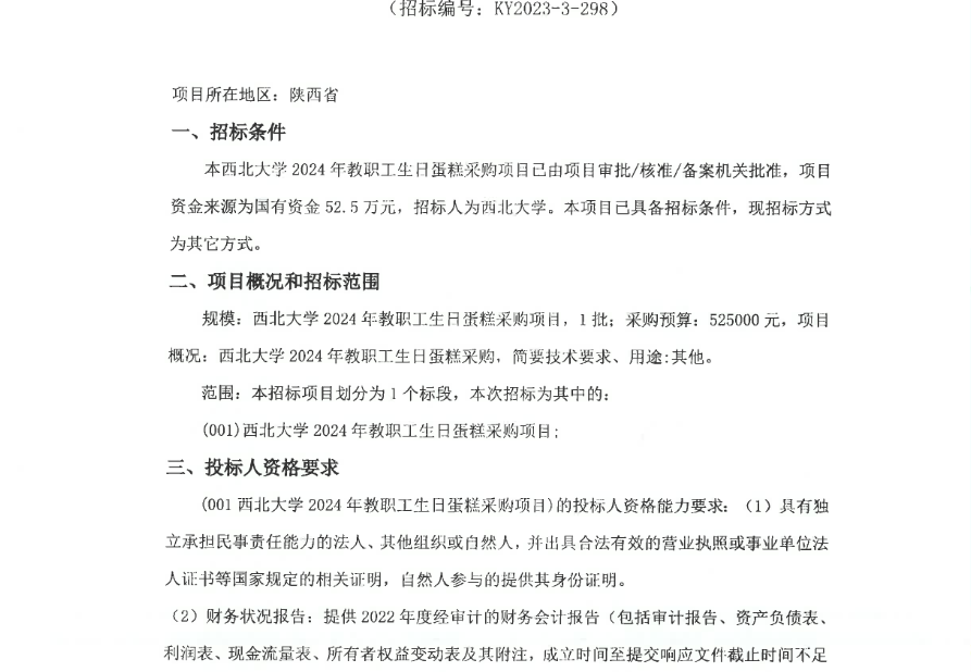 伟德国际1949始于英国2024年教职工生日蛋糕采购项目竞争性磋商公告 作者: 编辑:采购与招标办公室 时间:2023-11-27 原公告链接:http://bulletin.sntba.com/biddingBulletin/2023-11-27/855167.html