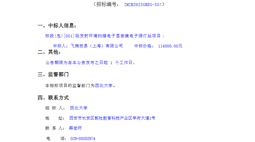 伟德国际1949始于英国场发射环境扫描电子显微镜电子源灯丝项目采购结果公告 作者: 编辑:采购与招标办公室 时间:2023-12-14 原公告链接:http://www.sntba.com/website/gg_show.aspx?id=263188
