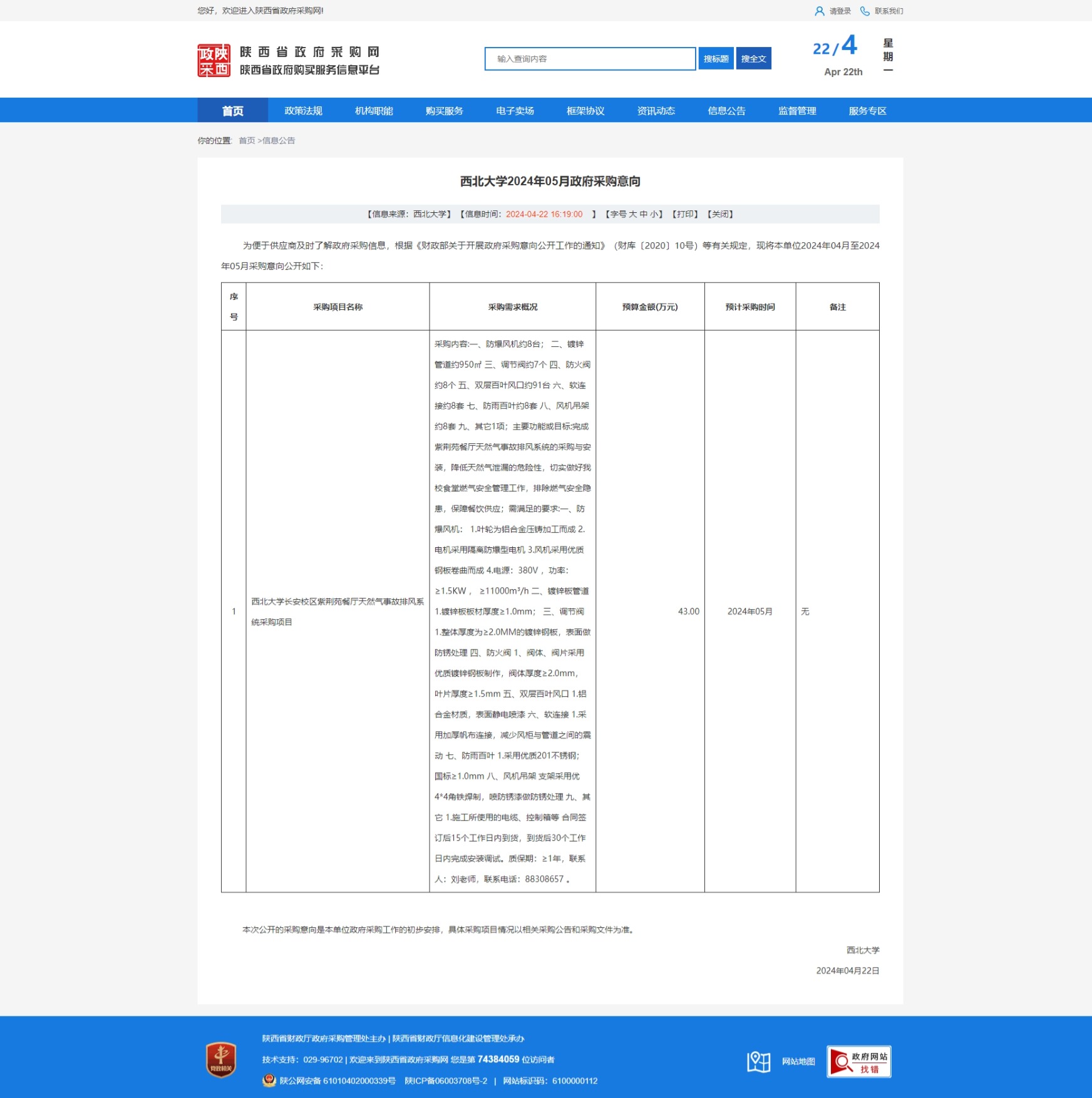 伟德国际1949始于英国2024年05月政府采购意向 作者: 编辑:采购与招标办公室 时间:2024-04-22 原公告链接:https://www.ccgp-shaanxi.gov.cn/freecms/site/shaanxi/ggxx/info/2024/8a69c2f18edfb8e9018f034a758507c8.html?noticeType=59¬iceId=6c449ff0-0083-11ef-b8b6-08c0eb20c666