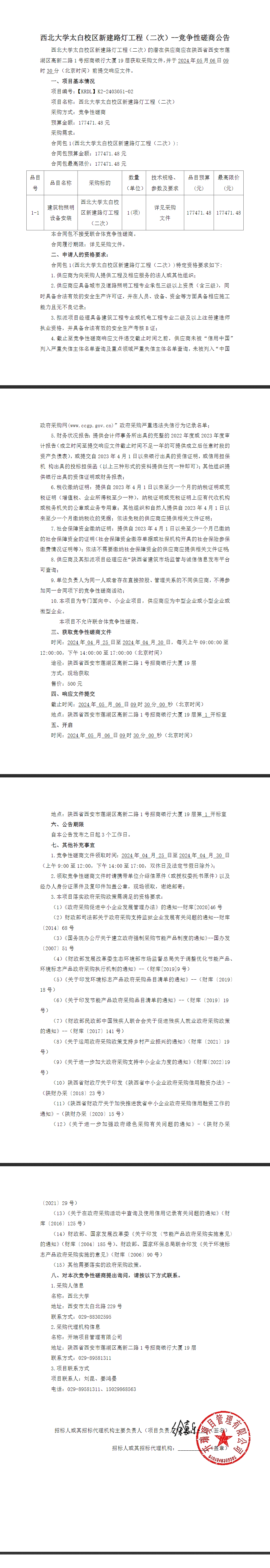 伟德国际1949始于英国太白校区新建路灯工程(二次)竞争性磋商公告