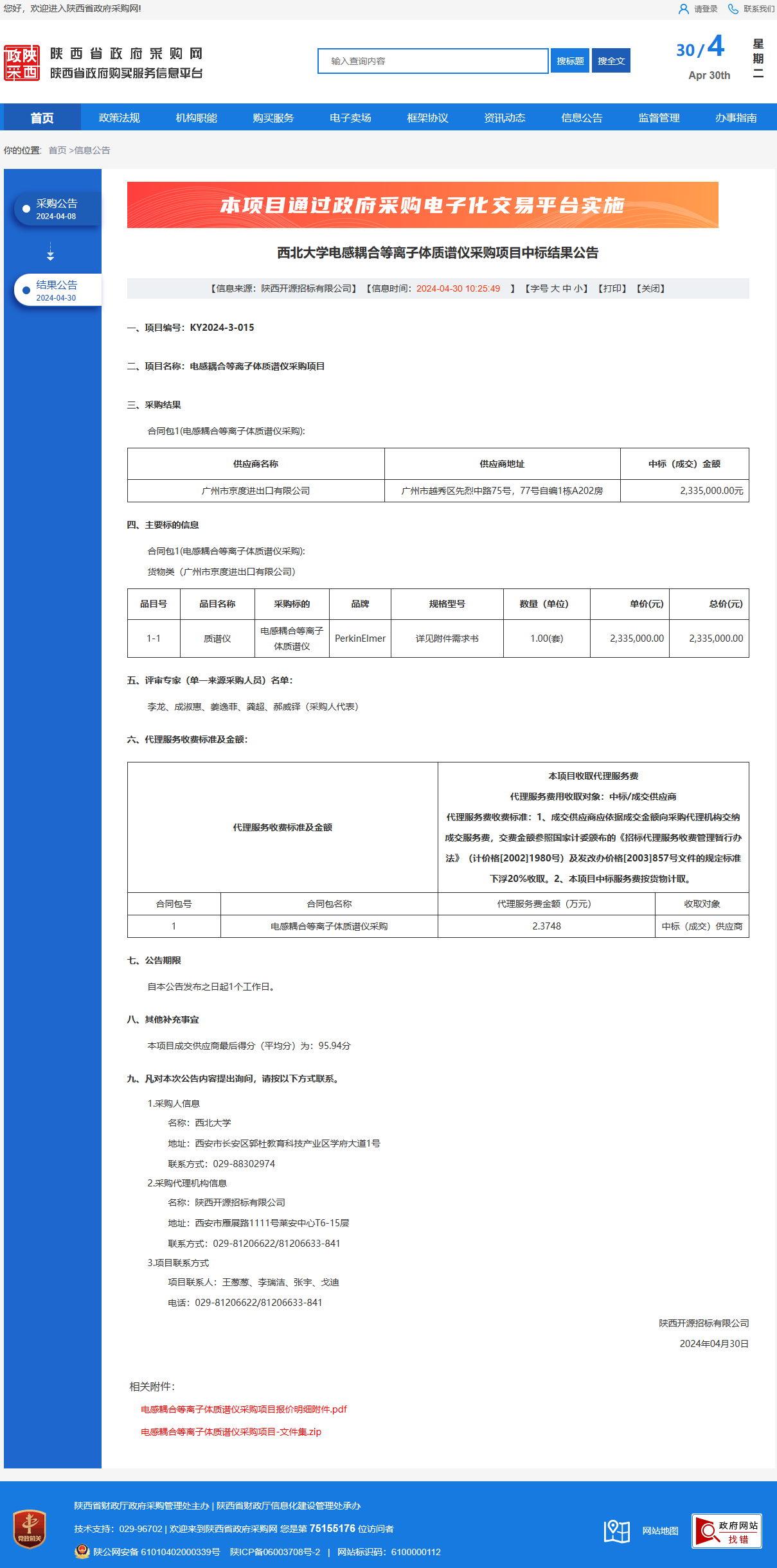 伟德国际1949始于英国电感耦合等离子体质谱仪采购项目中标结果公告